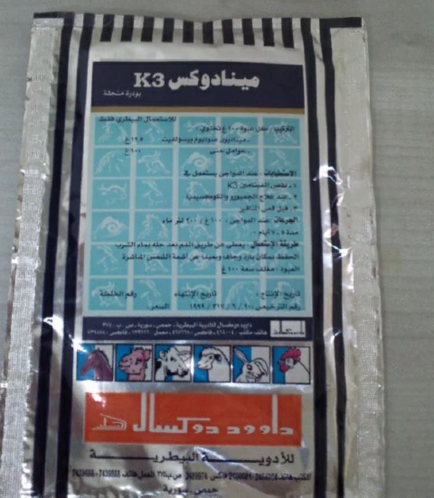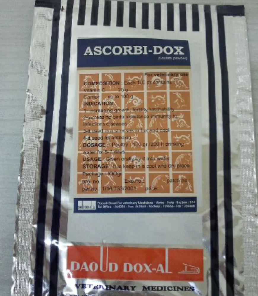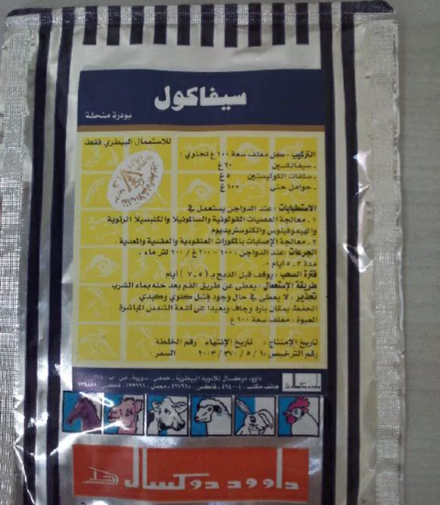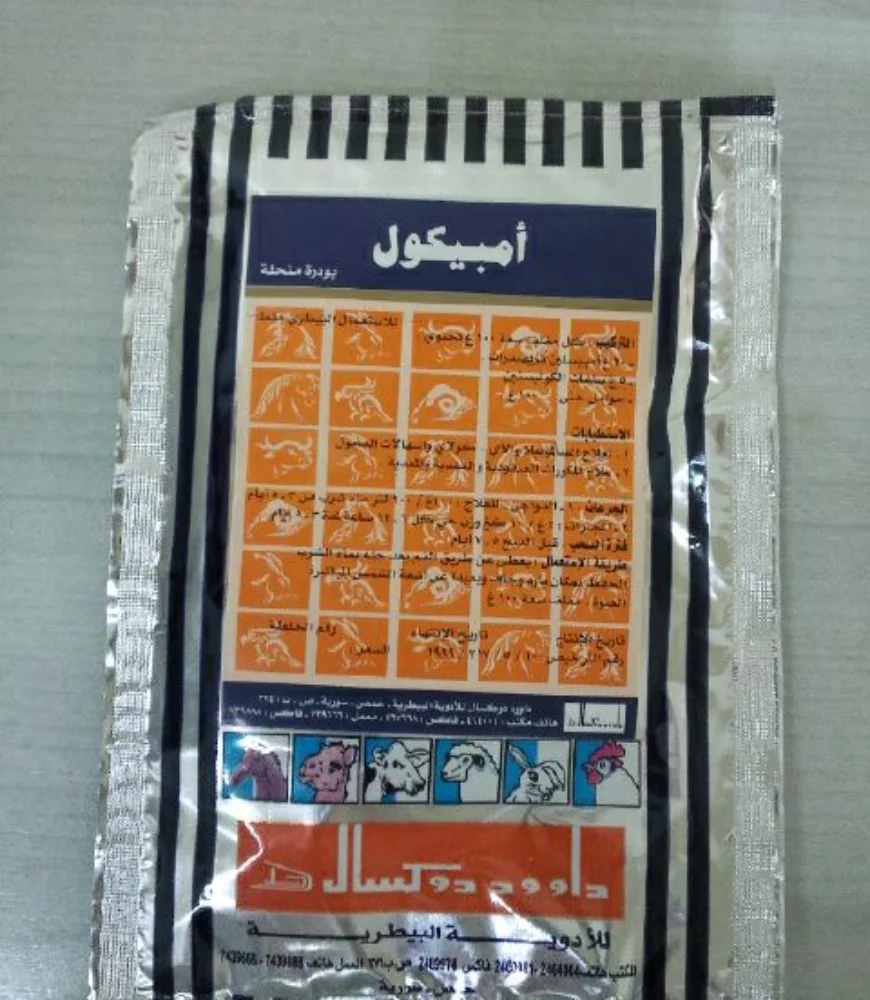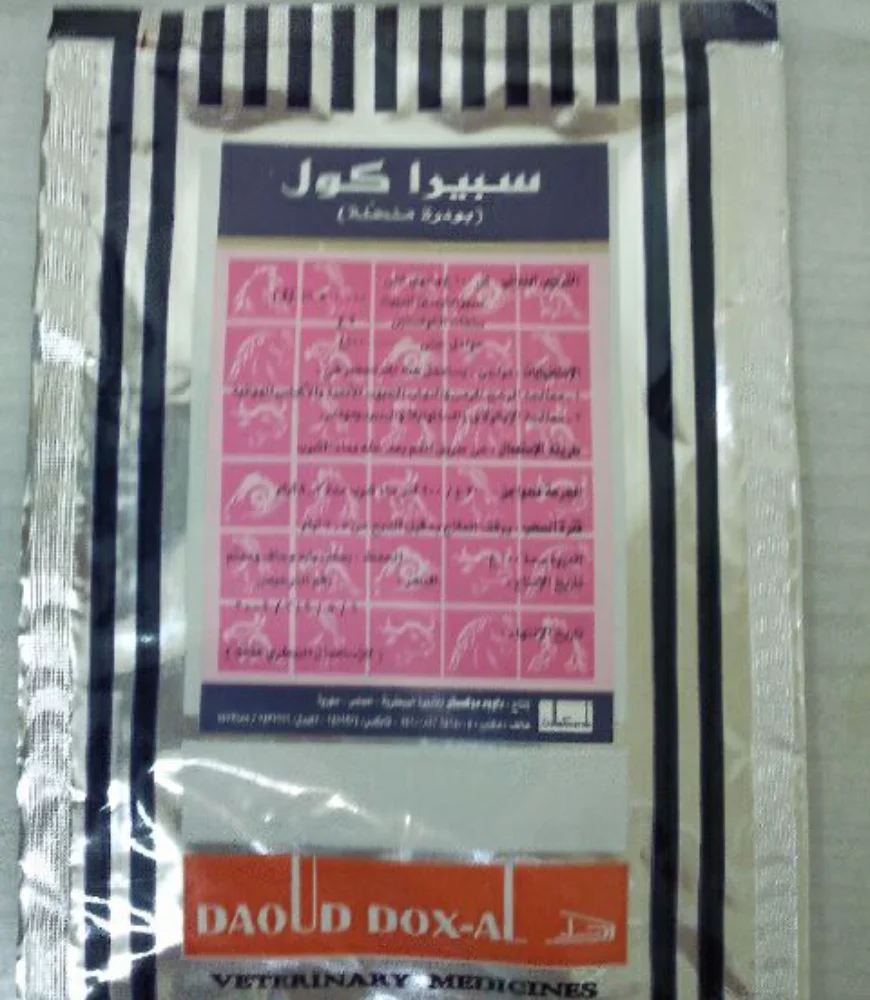 Powder Solutions One of the leading companies in the field of veterinary medicines industry. Our Products Powder Solutions K3 مينادوكس الاستطبابات K3 نقص فيتامينعلاج الكوكسيديا و الجامبورو قبل قص المناقير نيو دوكس الاستطبابات عند الدواجن : معالجة التهابات الأمعاء الحادة الناجمة عن الأي كولاي، السالمونيلا عند العجول : معالجة الالتهابات البولية الناجمة عن المكورات العنقودية الموصعية والشيجيلا اسكوربي دوكس الاستطبابات زيادة كفاءة الجهاز المناعي و خاصة بعد الاجهاد الناتج عن الالتهابات الفيروسية و البكتيرية والطفيليةلتحسين النمو ورفع الكفاءة الانتاجية وزيادة إنتاج البيضعلاج الإجهاد الناجم عن ارتفاع الحرارة و البرد الشديدين سبيرادوكس الاستطبابات معالجة الرشح المزمن (المرض التنفسي المزمن) والأكياس الهوائية، والتهابات القصبات و الجيوب الأنفية أمبيكول الاستطبابات علاج السالمونيلا، والأي كولايعلاج المكورات العقدية والعنقودية والمعدية سبيراكول الاستطبابات معالجة الرشح المزمن والأكياس الهوائية، والتهابات القصبات و الجيوب الأنفيةمعالجة الأي كولاي والسالمونيلا والبسيدوموناس سيفاكول الاستطبابات علاج العصيات القولونية والسالمونيلا و الكليبسيلا الرئوية والميموفيلوس والكلوستريديوممعالجة الإصابة بالمكورات العقدية والمكورات العنقودية والمعدية